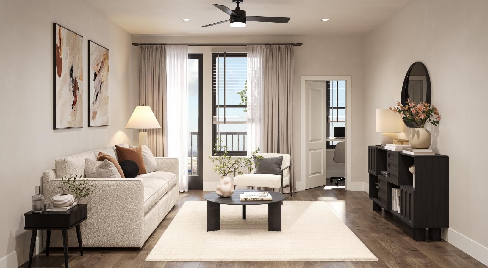 • a living room with a large window